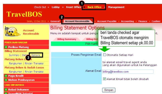 Back Office » Account Receiveable » Periksa Piutang » Billing Statement » Options